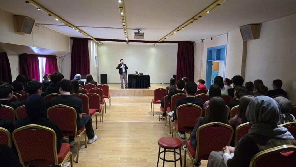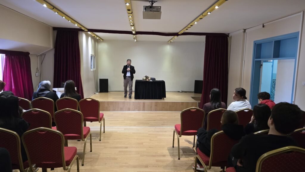 Hocamız gerçekleştirdiği etkileyici sunumda; dilin yanlış kullanımının insanın ruh dünyasına verebileceği zararları, dilin ahlaki açıdan nasıl kullanılması gerektiğini ve İslam’ın dil kullanımına dair ortaya koyduğu ölçüleri öğrencilerimizle paylaştı.